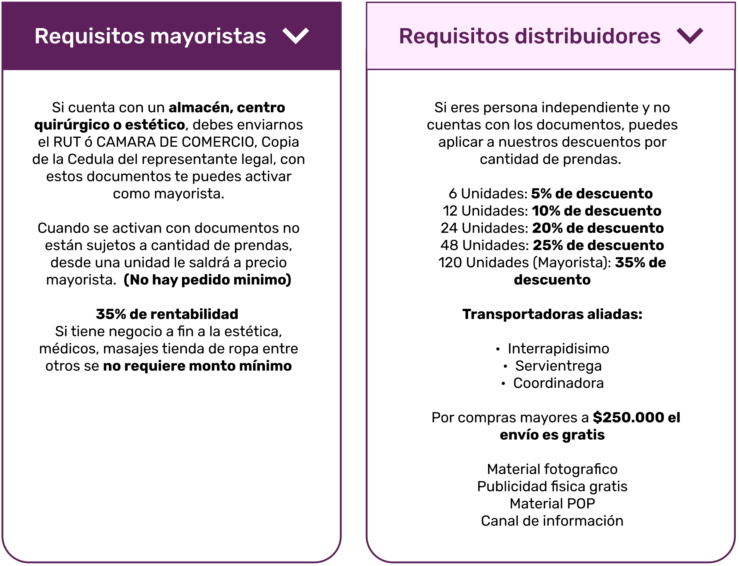 Como mayorista puedes obtener un autoincremento entre 35% de rentabilidad sobre el precio de compra, dependiendo de tu tipo de negocio, como estética, modista o tienda de ropa (sin mencionar más).